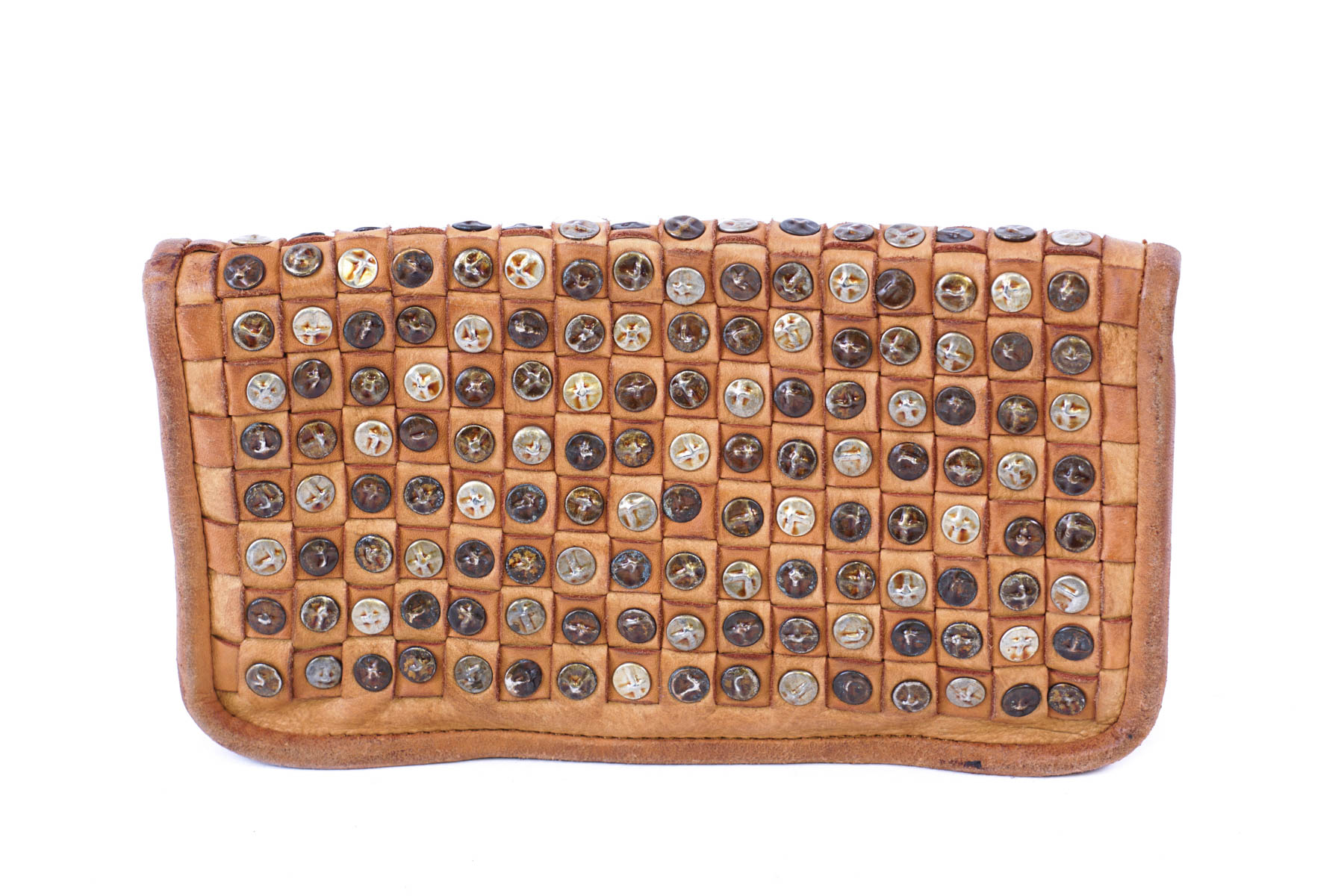 Graži rankų darbo natūralios odos moteriška piniginė su sidabrinėmis tamsintomis kniedėmis. Viduje yra du skyreliai banknotams, taip pat užsegama kišenėlė monetoms, dvylika kišenių vizitinėms kortelėms. Piniginė užsegama užtraukutu, turi papildomą trumpesnę nusegamą rankeną. Į piniginę galima įsidėti ir savo išmanųjį telefoną. Tai puiki dovana bet kokiai progai, gimtadieniui, jubiliejui, Kalėdoms, Valentino dienai. Aksesuaras visam gyvenimui...